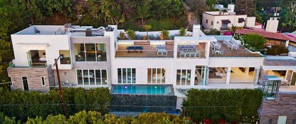 Architectural estate with high-end modern finishes and one of a kind rooftop entertainer's deck showcasing exceptional DTLA & Ocean views. This masterpiece is situated in one of the world's most sought-after neighborhoods, on a quiet street just two blocks from Sunset Blvd. This trophy compound features six bedrooms, seven bathrooms including one master suite with an opulent master bath, romantic