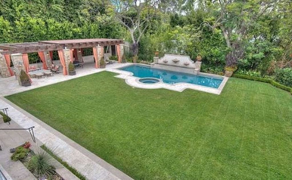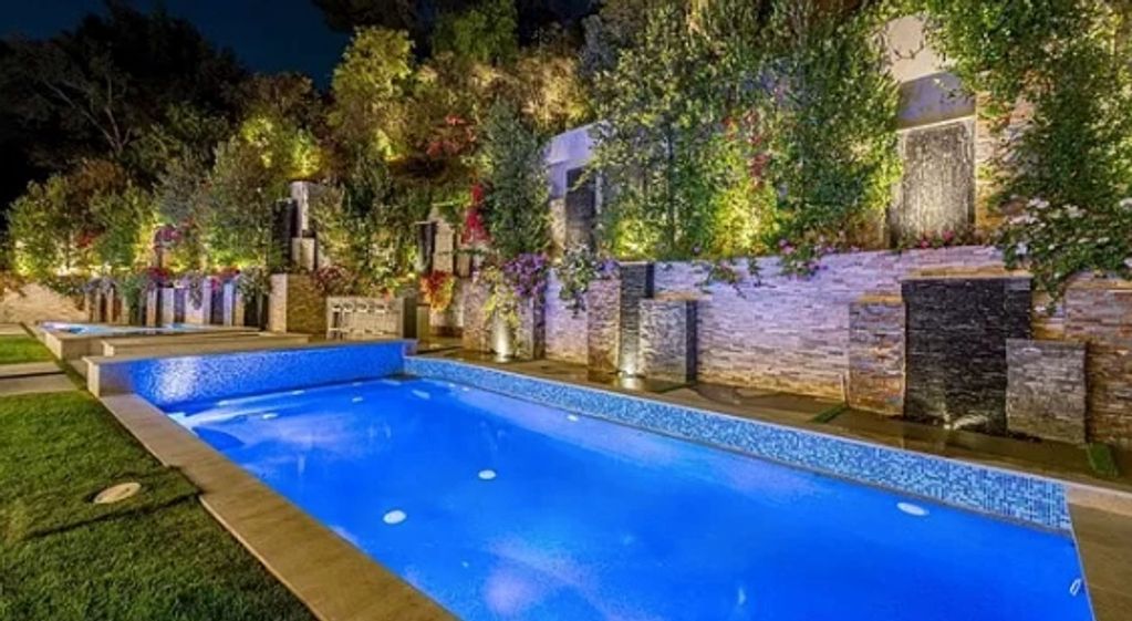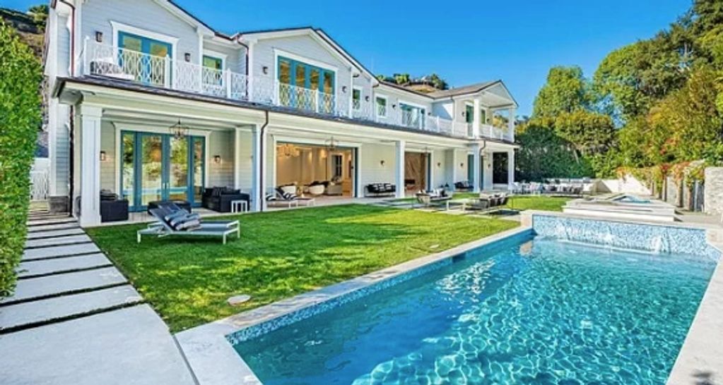 Cape Cod Mansion with a relaxing resort-style backyard alongside a grand detailed-oriented interior located in prestigious lower Bel-Air. The backyard features 20 waterfall features, cascading flowers over the hillside as well as over the falls, multiple bars & seating areas, a fire pit and a large grassy area. The interior features coffered ceilings which lead to two spacious side by side living