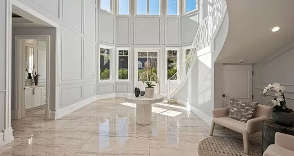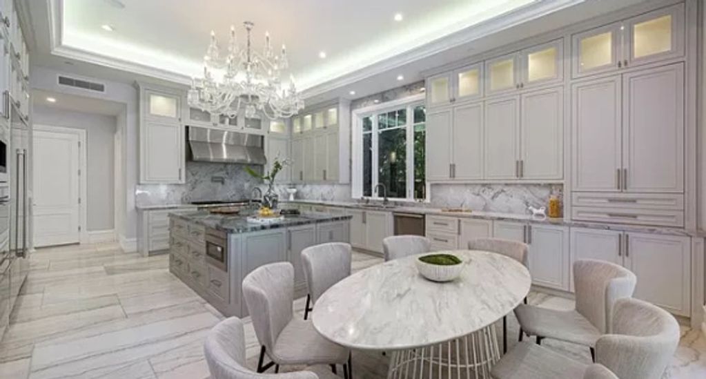 This Custom Brentwood Mansion is conveniently located in the heart of Brentwood. This exquisitely curated modern home is a truly luxurious retreat. Elegantly outfitted with imported Italian marble, wide plank wood flooring, glass wine closets, theater, gym, steam shower and elevator. Situated on a wide lot with lush landscaping, retractable sliding glass doors and an open floorplan create a seam