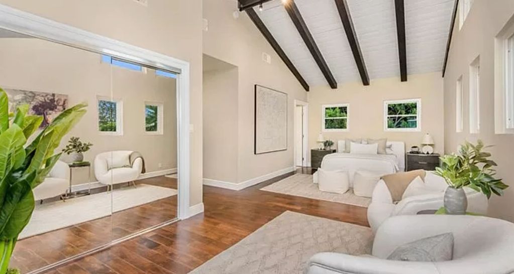 Prime Trousdale location with an open floor plan and seamless flow, This home features walls of glass creating a light and bright atmosphere throughout. Gated with a spacious motor court, 2 car garage, 5 beds, 5 baths just under 6000 square feet. The living, dining and family room are all spacious and have a seamless flow. The kitchen features a breakfast room, professional quality appliances, siz